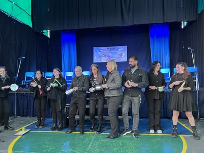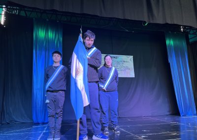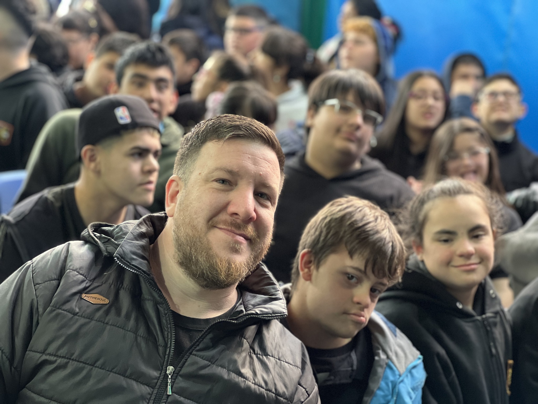Hubo una sorpresa inédita: un grupo de familiares, junto a los profesores de música, preparó una performance de percusión que culminó con una canción interpretada por todas las familias. El patio se llenó de aplausos y gratitud. Además, los estudiantes dedicaron un tema especial a sus docentes, que escucharon emocionados desde el escenario. “La del Patio” cerró la jornada con humor, arrancando risas y emocionando al público presente.