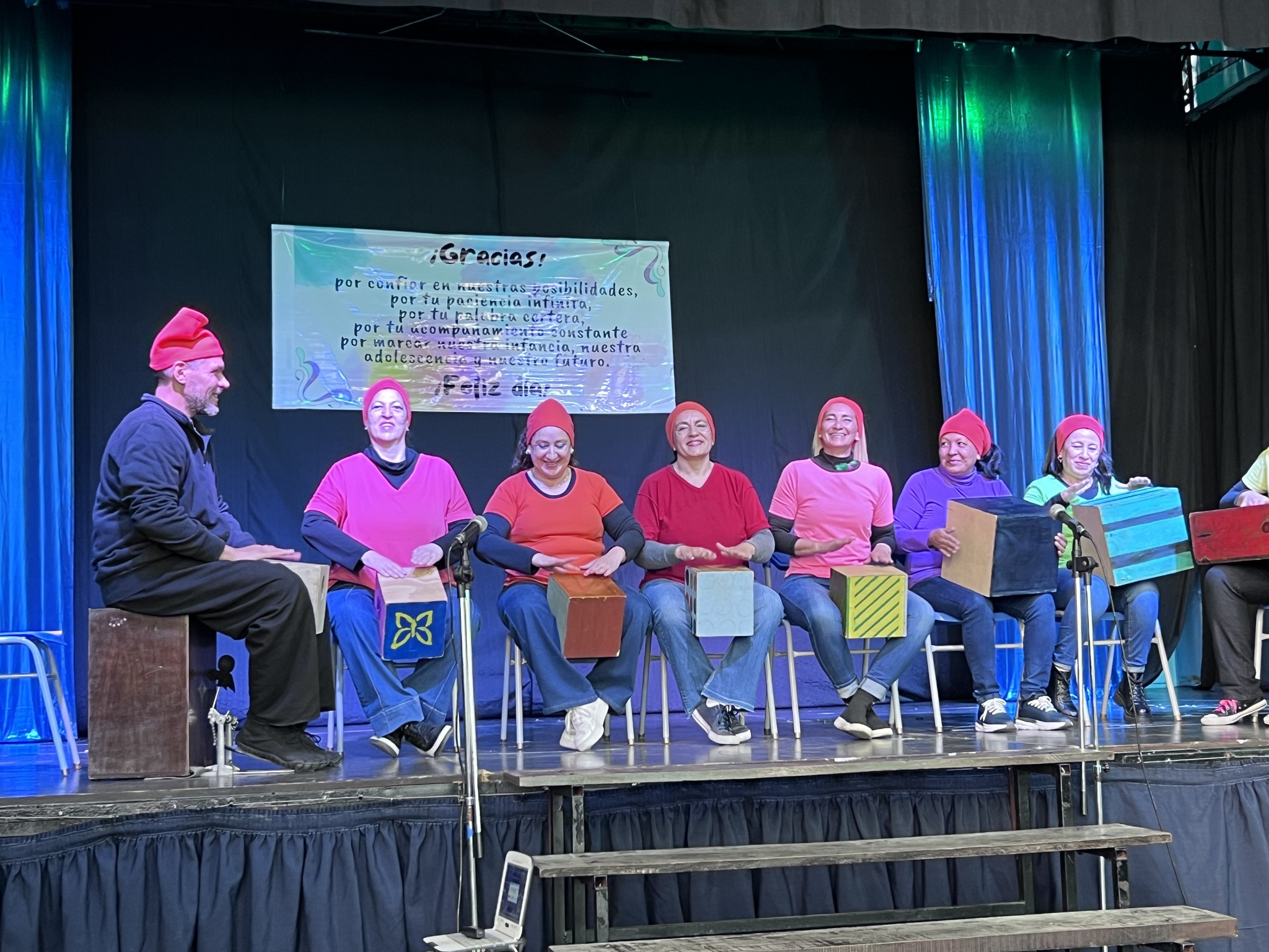 El canto de los estudiantes, el grupo de percusión de madres, el show esperado de “La del Patio” y el regalo preparado por los alumnos y alumnas en el taller de marroquinería para cada docente, emocionaron a todos los presentes.