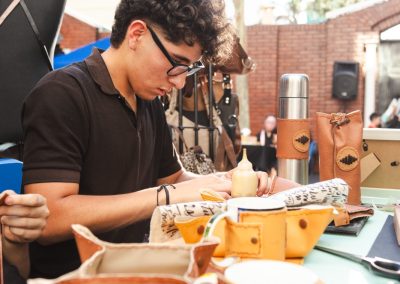 Cientos de familias, ex alumnos, amigos y vecinos recorrieron los stands con productos confeccionados por los y las estudiantes del CFI en los talleres de joyería, cerámica, tarjetería, gastronomía, carpintería, herrería artística, telar, títeres, marroquinería, indumentaria, mecánica entre otros.