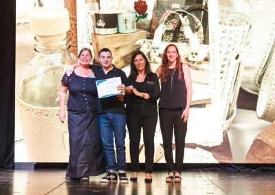 En el acto académico se realizó un reconocimiento a distintos estudiantes por su desempeño en los talleres, entregándoles menciones especiales. También se compartieron videos, en los cuales se mostraron dos proyectos significativos de este año: los Torneos Juveniles Bonaerenses y el destacado trabajo del Departamento de Educación Física en todos los niveles, y la producción de 200 regalos hechos por los estudiantes en el Taller de Marroquinería, obsequiados el día del Profesor y el día del Maestro.