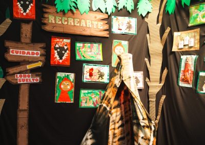 Desde una propuesta artística pensada como espacio de expresión integral, niñas y niños conocieron a Caperucita Roja, los Tres Chanchitos y el Lobo, recreando sus escenarios y jugando a partir de ellos en el área de Plástica.